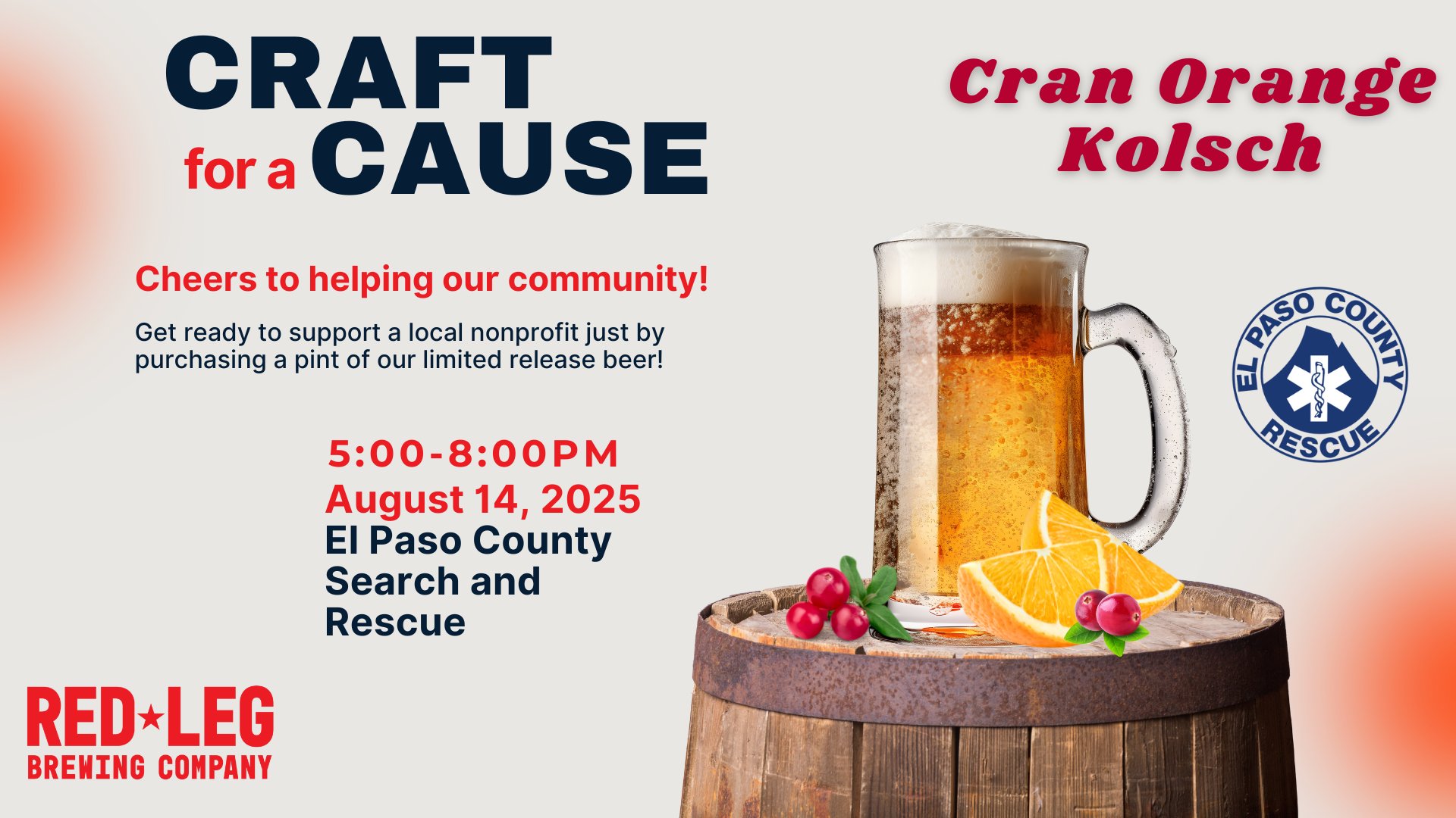 Red Leg Brewing Company is all about giving back to the Colorado Springs community! Red Leg hosts 'Craft for a Cause' for local non-profits to connect with the community, share their mission and an incredible specialty brew. Join Red Leg Brewing Company for a Firkin release of Cran Orange Kolsch starting at 5pm. Support El…